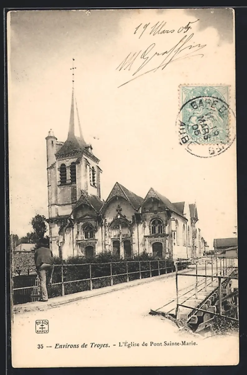 AK Pont-Sainte-Marie, L`Église de Pont-Sainte-Marie et le chemin environnant