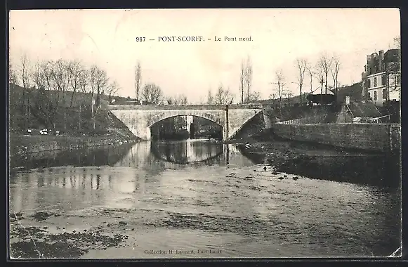 AK Pont-Scorff, Le Pont neuf über den Fluss in einer winterlichen Landschaft