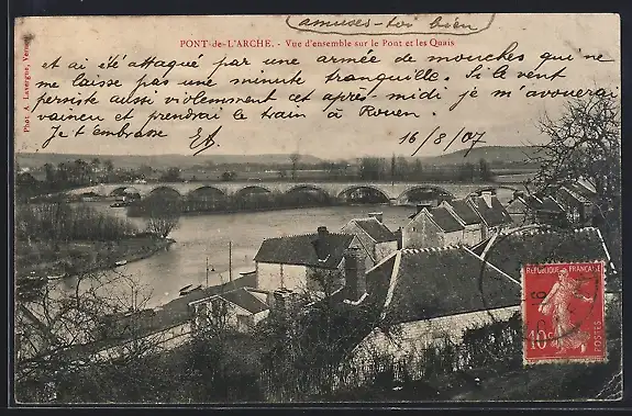 AK Pont-de-l`Arche, Vue d`ensemble sur le pont et les quais