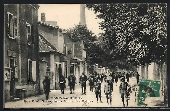 AK Pont-du-Chéruy, Rue E.-G. Grammert, Sortie des Usines