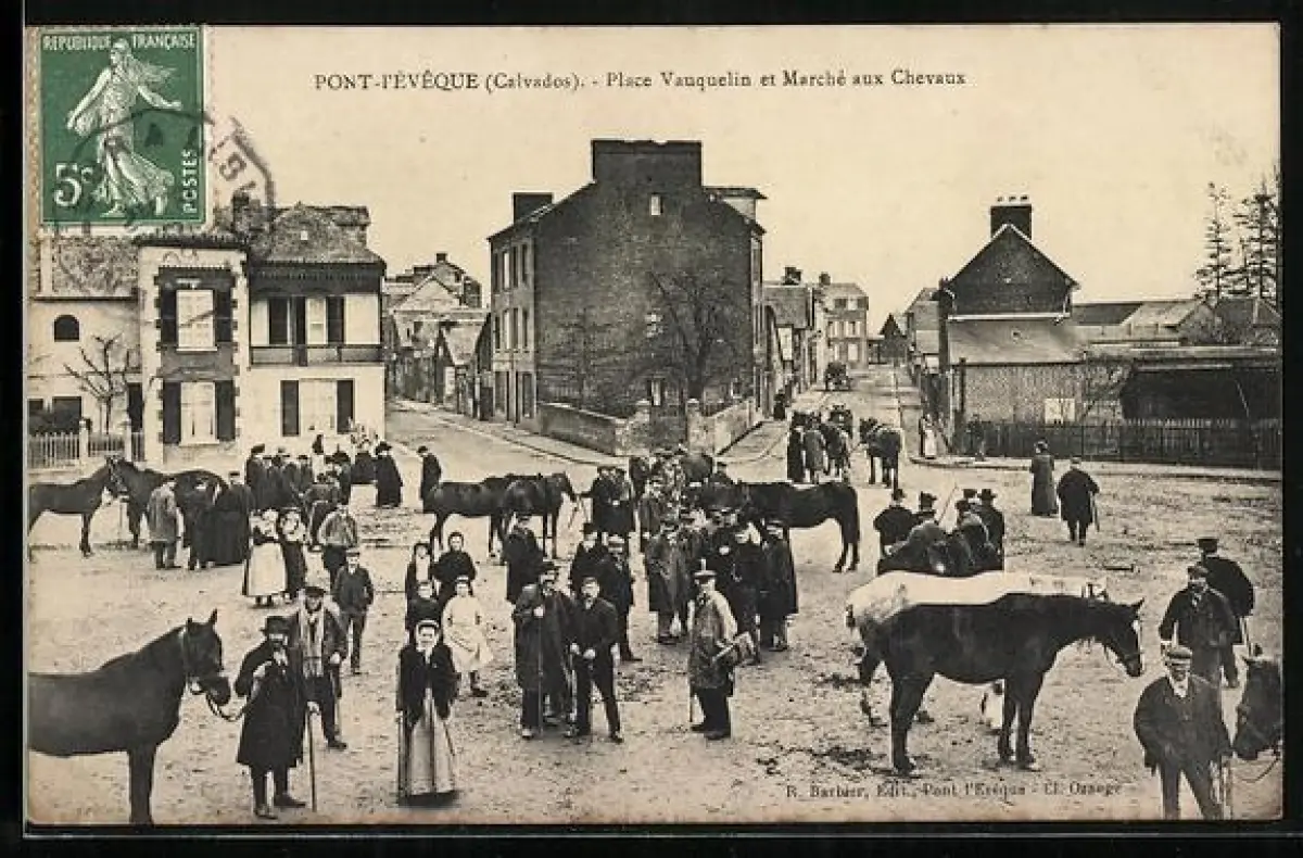 AK Pont-l'Eveque, Place Vauquelin et Marche auc Chevaux
