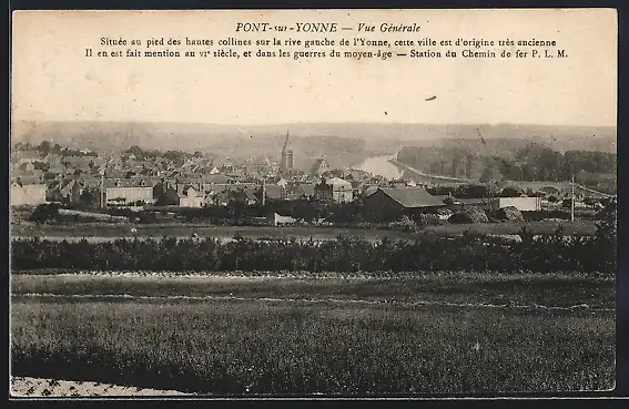 AK Pont-sur-Yonne, Vue générale de la ville avec collines et rivière en arrière-plan