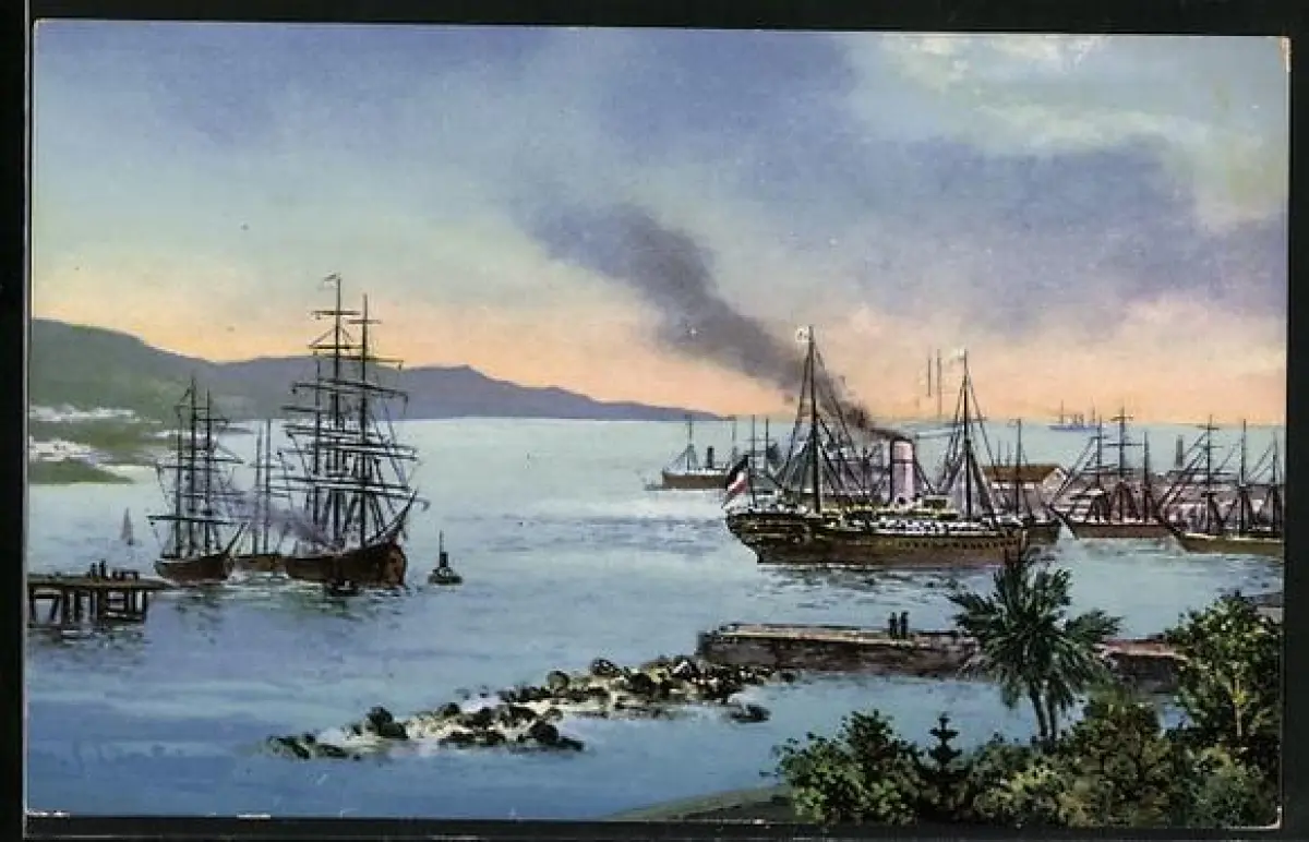AK Ponta-Delgada /Azoren, Meerblick mit Schiffen
