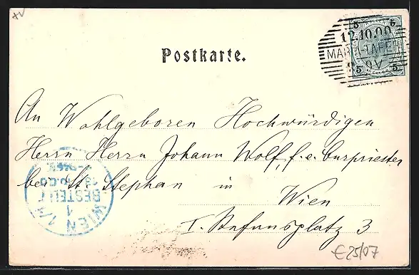 alte Ansichtskarte, gelaufen 1900, Stempelspur, guter Zustand