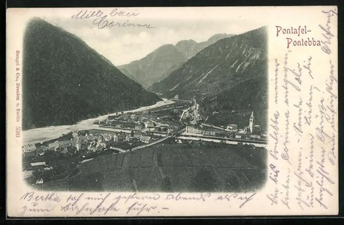 AK Pontafel-Pontebba, Totalansicht aus der Vogelschau