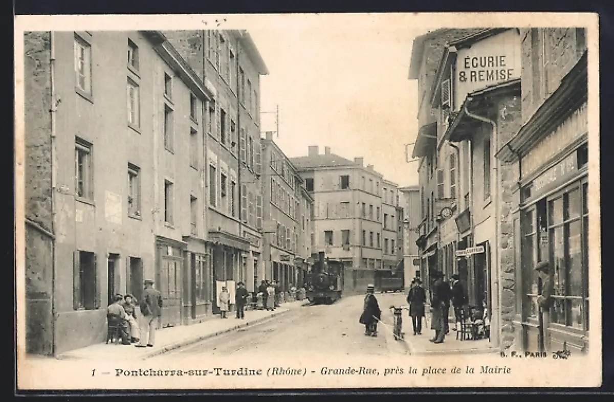 AK Pontcharra-sur-Turdine /Rhône, Grande-Rue près la place de la Mairie avec passants et commerces