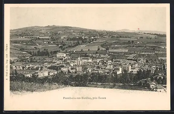 AK Pontcharra-sur-Turdine, Vue générale du village et des collines environnantes