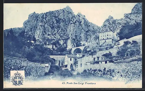 AK Ponte San Luigi, Frontière avec vue sur la montagne et bâtiments historiques