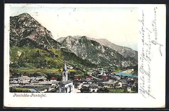AK Pontebba-Pontafel, Ortsansicht gegen das Gebirge