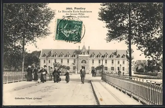 AK Pontivy, La Nouvelle École Supérieure des Jeunes Filles, vue depuis le pont