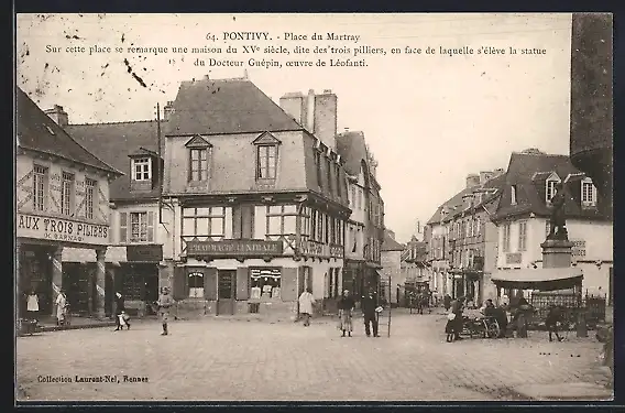 AK Pontivy, Place du Martray avec maison du XVe siècle et statue du Docteur Guépin