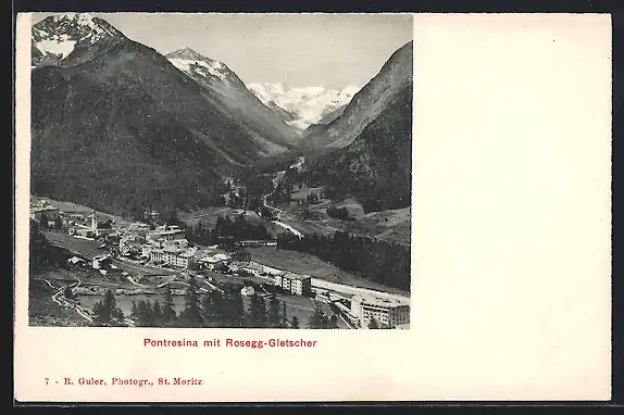 AK Pontresina, Ansicht mit dem Rosegg-Gletscher