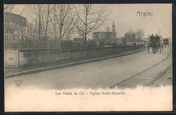 AK Ponts-de-Cé, Église Saint-Maurille et calèche sur le pont