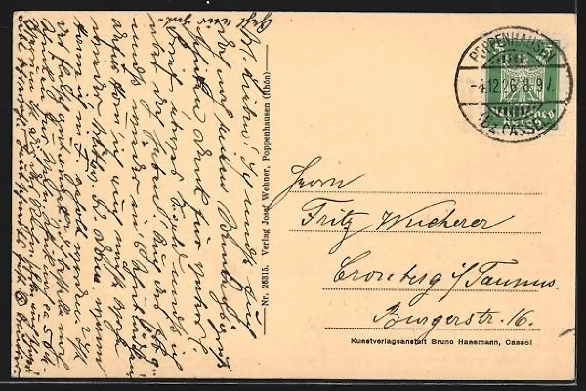 gelaufen 1926, Stempelspur, Eckknick rechts oben, guter Zustand