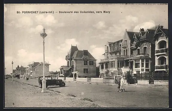 AK Pornichet, Boulevard des Océanides vers Mazy avec voitures et piétons