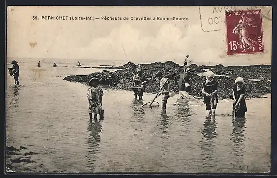 AK Pornichet /Loire-Inf., Pêcheurs de Crevettes à Bonne-Source