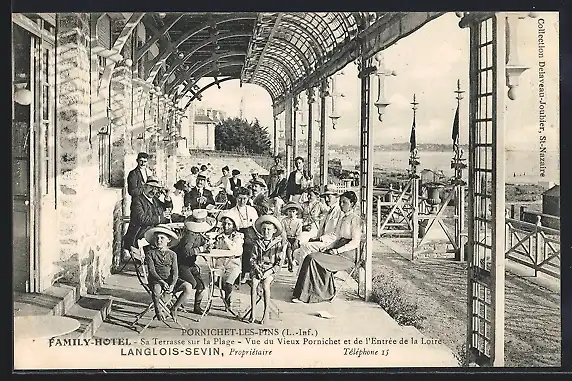 AK Pornichet-les-Pins, Terrasse du Family-Hôtel avec vue sur la plage et l`entrée de la Loire