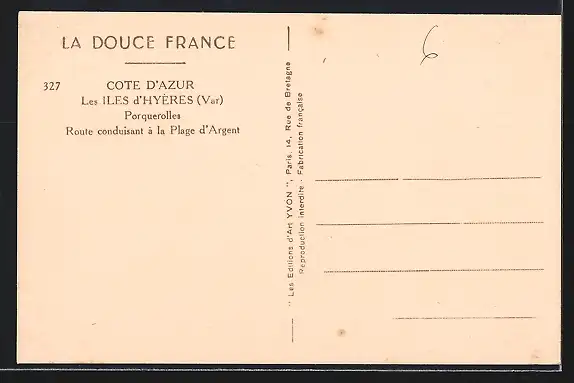 AK Porquerolles, Route conduisant à la Plage d`Argent