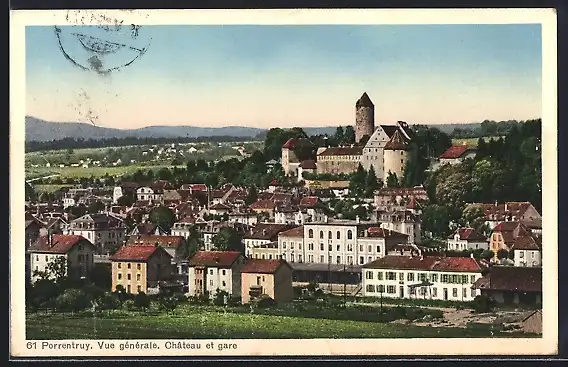 AK Porrentruy, Vue générale, Château et gare