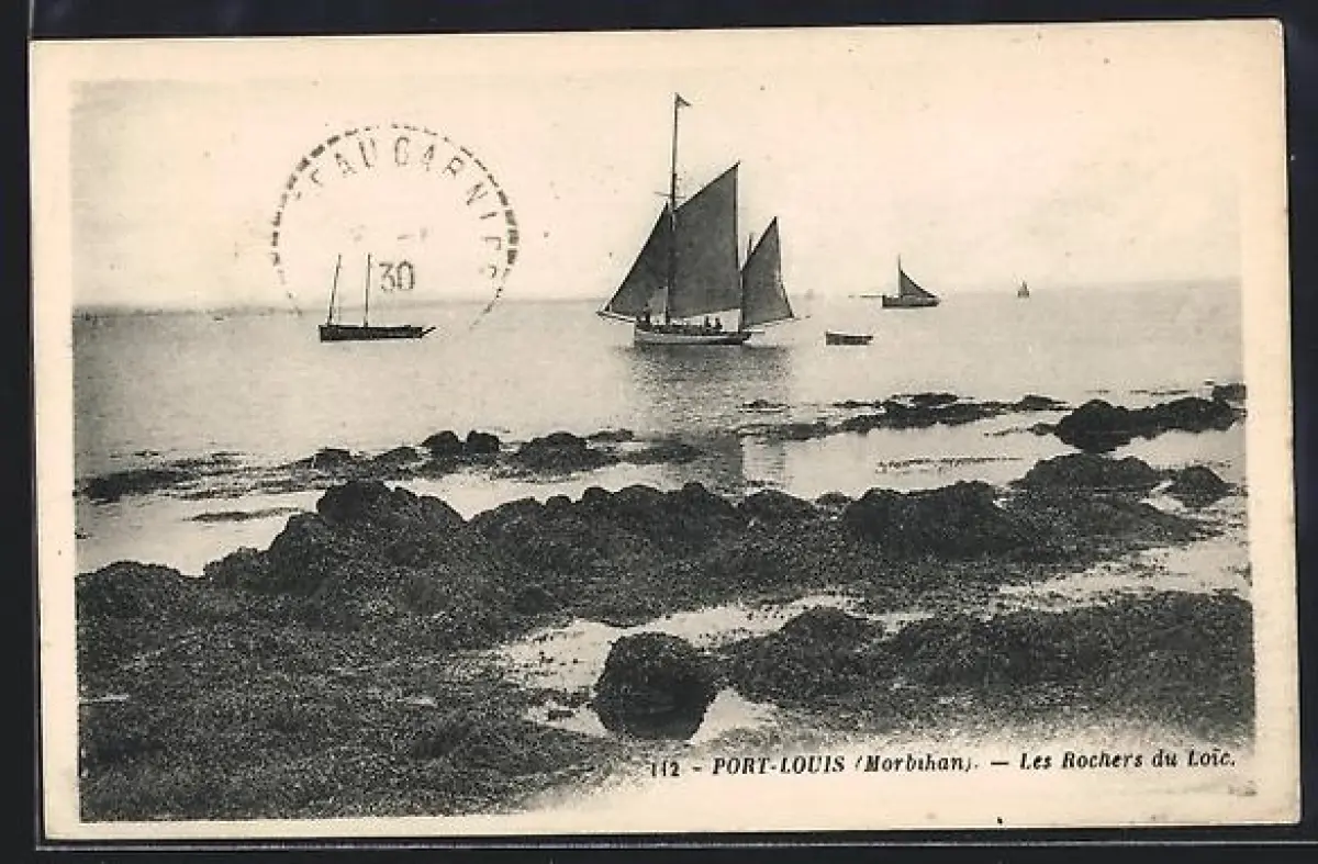 AK Port-Louis /Morbihan, Les Rochers du Loïc et voiliers en mer