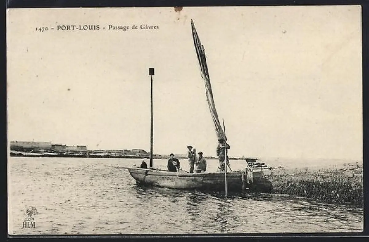 AK Port-Louis, Passage de Gâvres avec un bateau sur l`eau et des passagers à bord
