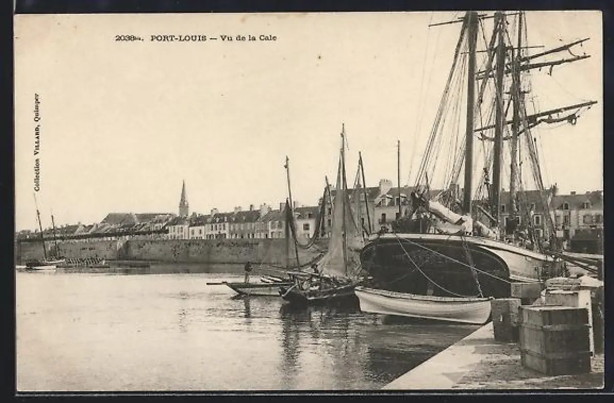 AK Port-Louis, Vue de la Cale avec voiliers et quais animés