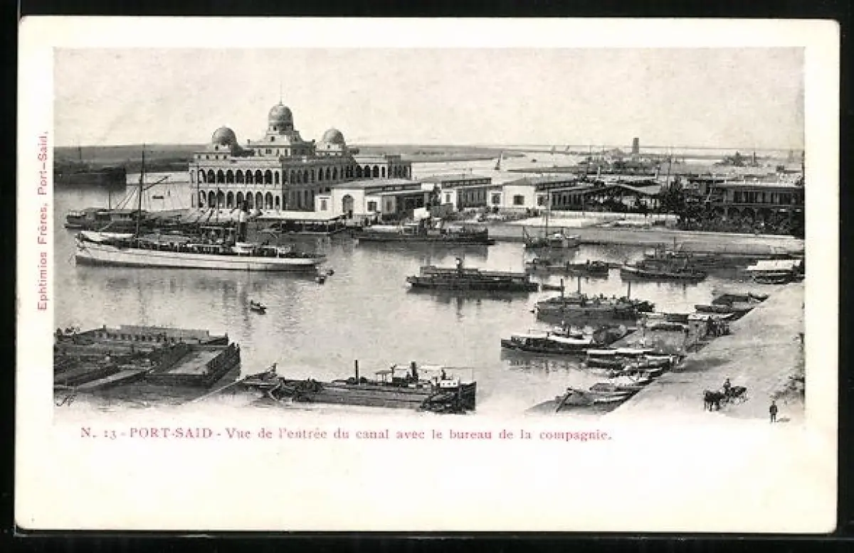 AK Port-Said, Vue de l`entree du canal avec le bureau de la compagnie