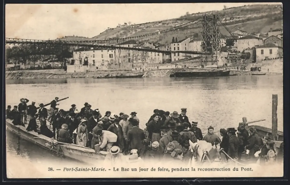 AK Port-Sainte-Marie, Le Bac un jour de foire, pendant la reconstruction du Pont