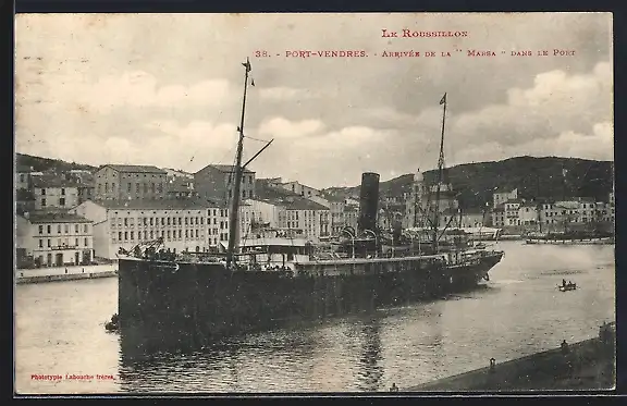 AK Port-Vendres, Arrivée de la Marsa dans le Port