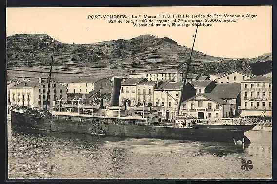 AK Port-Vendres, La Marsa T. S. F. fait le service de Port-Vendres à Alger