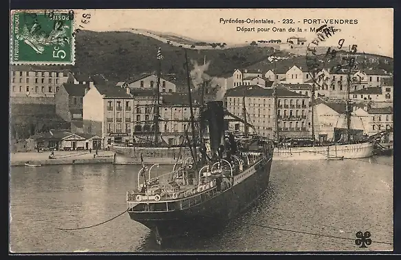 AK Port-Vendres, Passagierschiff Medjerda läuft nach Oran aus