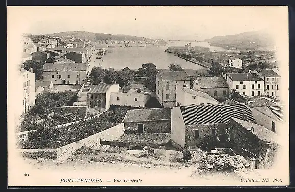 AK Port-Vendres, Vue générale du port et des toits de la ville