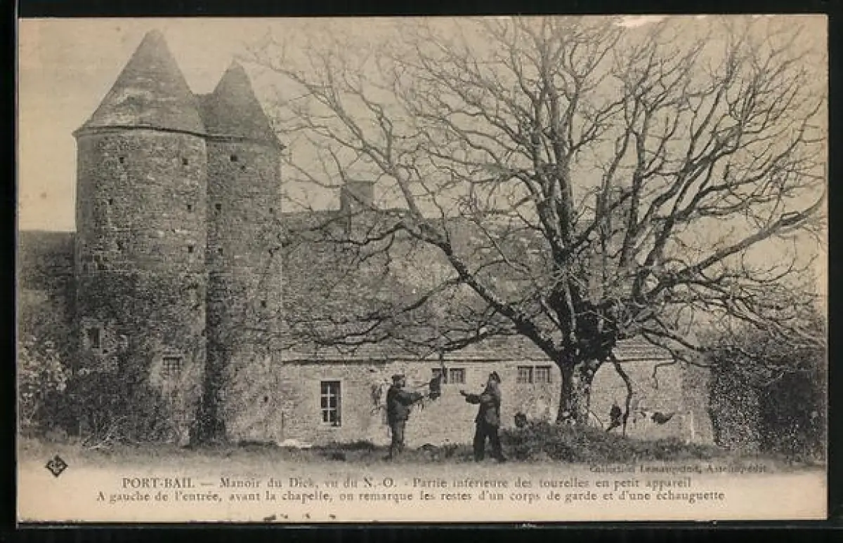 AK Portbail, Manoir du Dicq, vue de la tourelle et arbre imposant