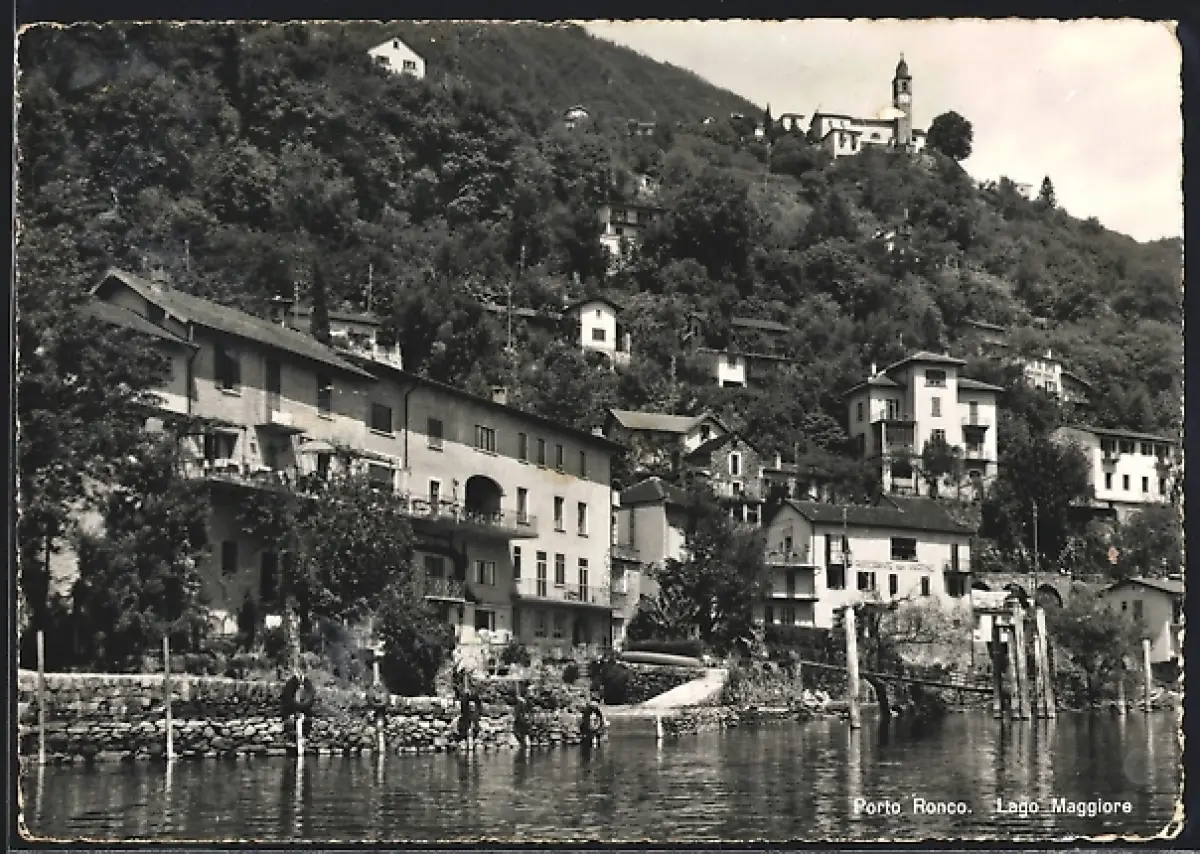 AK Porto Ronco /Lago Maggiore, Panorama mit Kirche