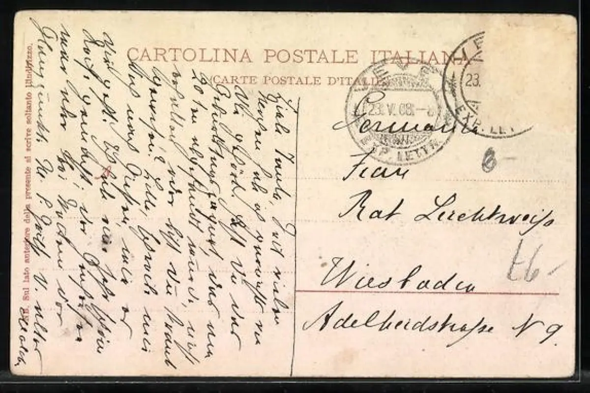 alte Ansichtskarte, gelaufen 1908, Briefmarke entfernt, guter Zustand