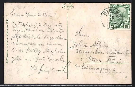 alte Ansichtskarte, gelaufen 1912, guter Zustand