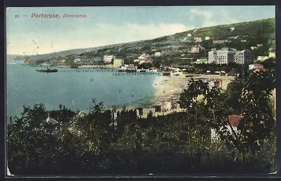 AK Portorose, Ortspanorama aus der Vogelschau