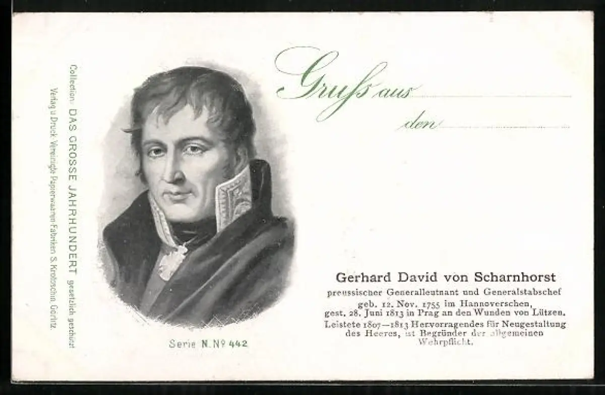 AK Porträt Gerhard David von Scharnhorst, Generalleutnant und Generalstabschef