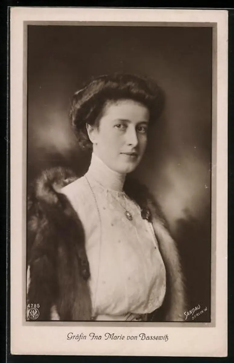 AK Porträt Gräfin Ina Maria von Bassewitz, Gemahlin des Prinzen Oskar von Preussen