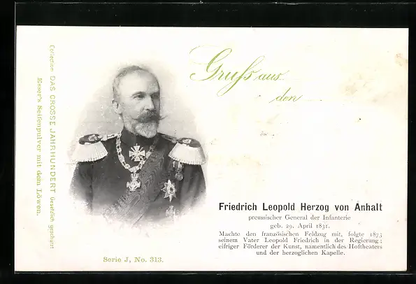 AK Porträt Herzog Friedrich Leopold von Anhalt in Uniform