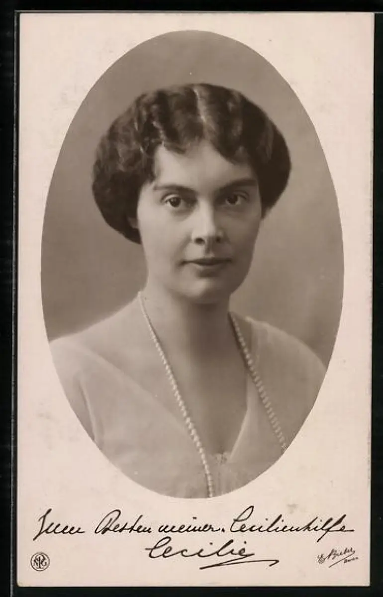 AK Porträt Kronprinzessin Cecilie mit Perlenkette