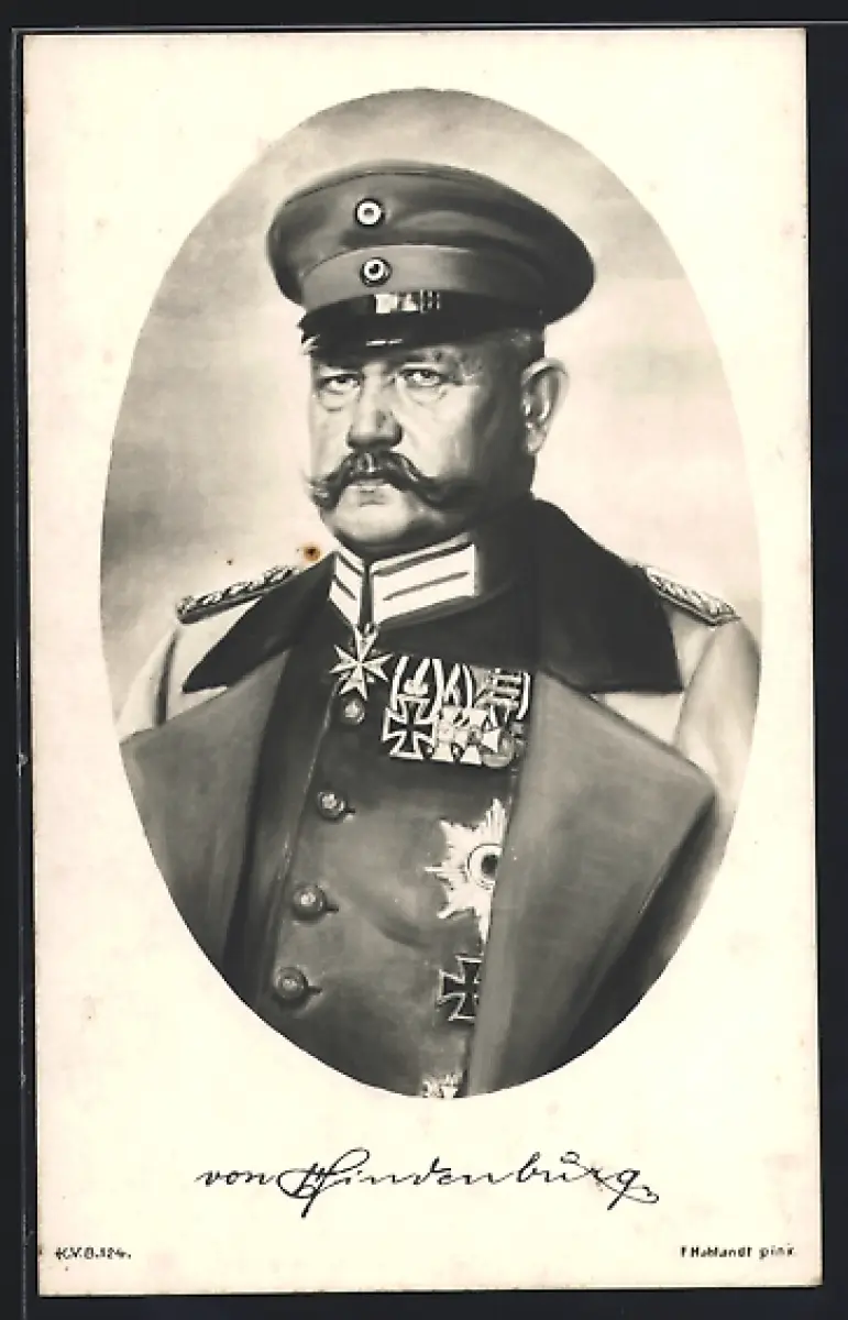 AK Porträt Paul von Hindenburg in Uniform mit Schirmmütze