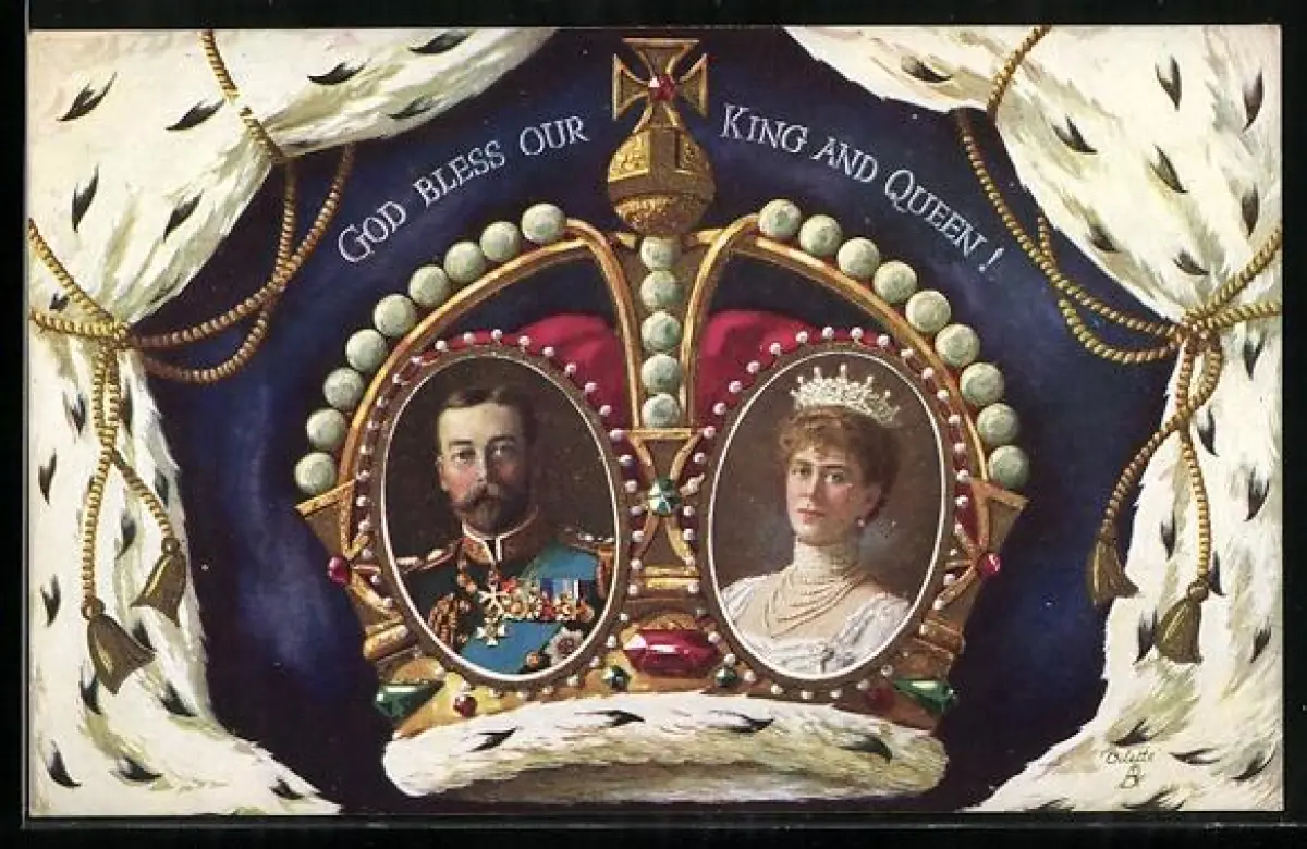 AK Porträts von König George V. und Queen Mary von England, Krone