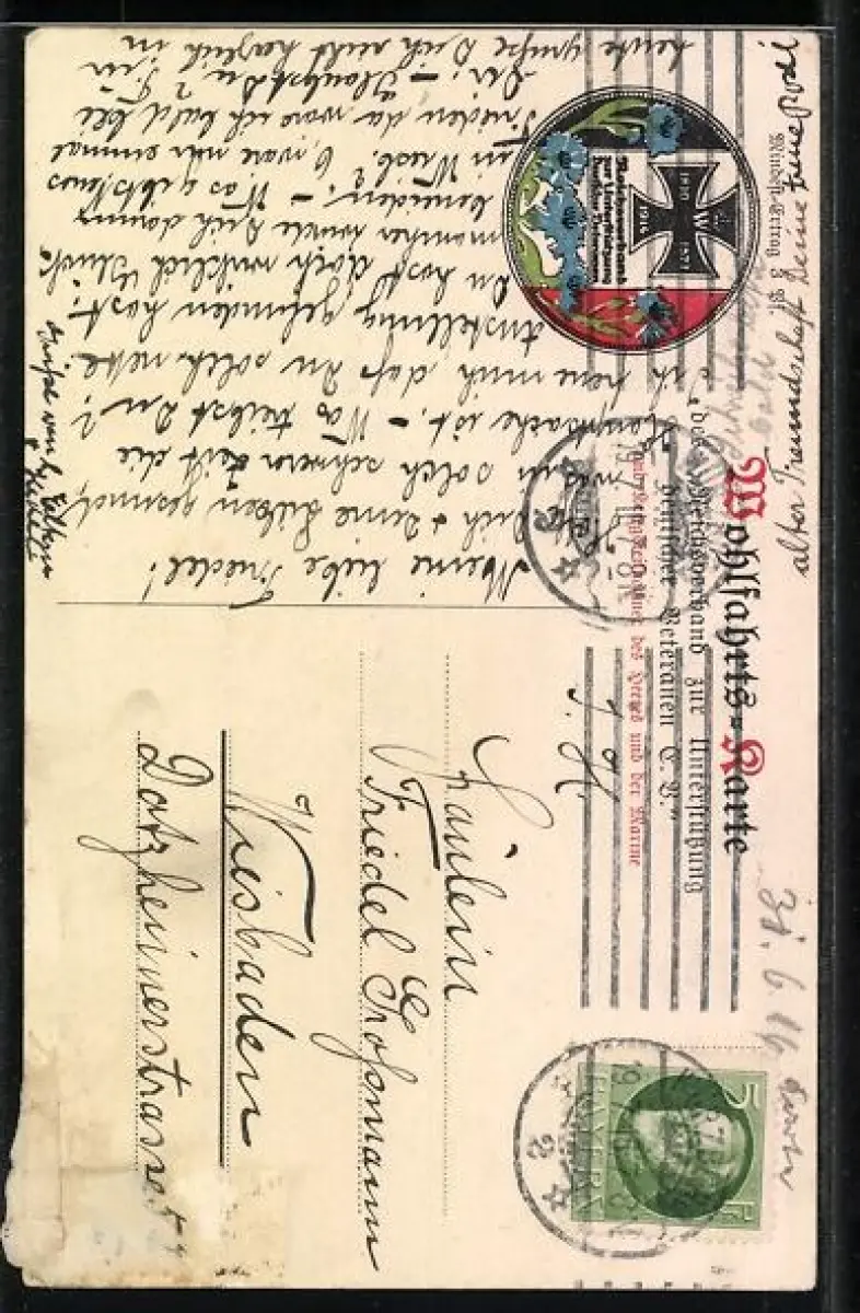 gelaufen 1916, rückseitig Klebe- und Papierreste, guter Zustand