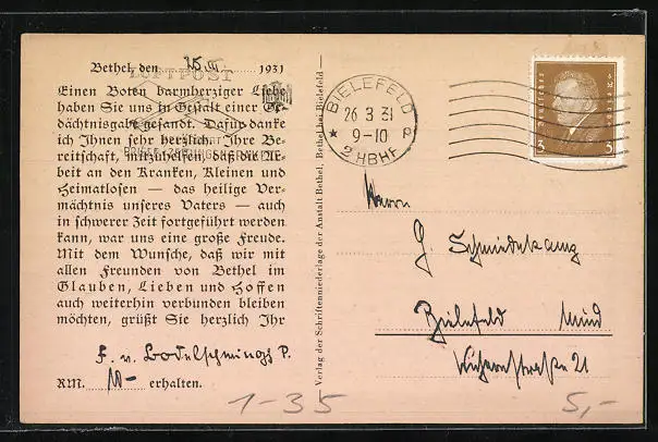 alte Ansichtskarte, gelaufen 1931, guter Zustand
