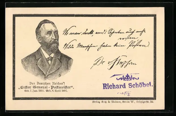 AK Portrait H. von Stephan, Erster General-Postmeister, Ganzsache