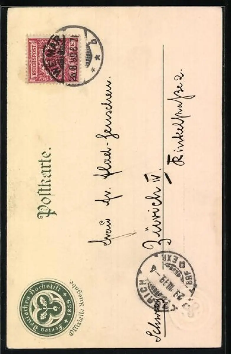 alte Ansichtskarte, gelaufen 1899, guter Zustand