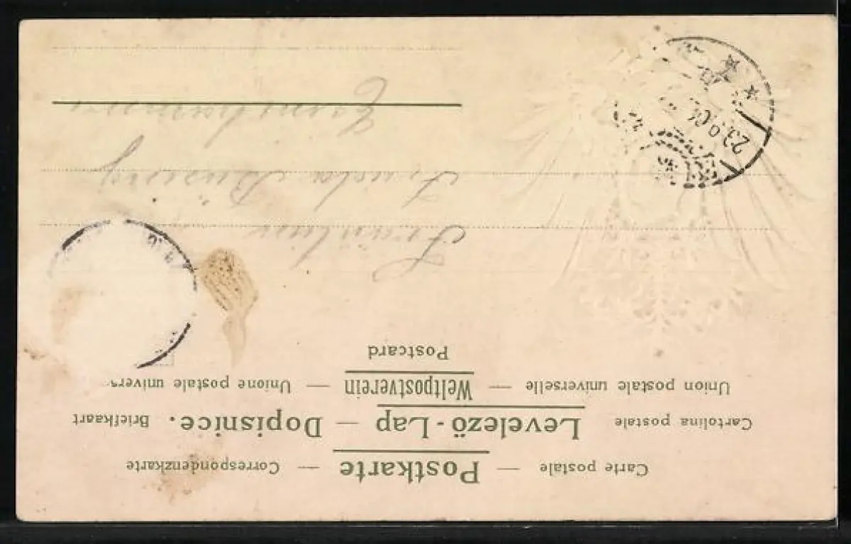 alte Ansichtskarte, gelaufen, Briefmarke entfernt, rückseitig Oberflächenschaden, guter Zustand