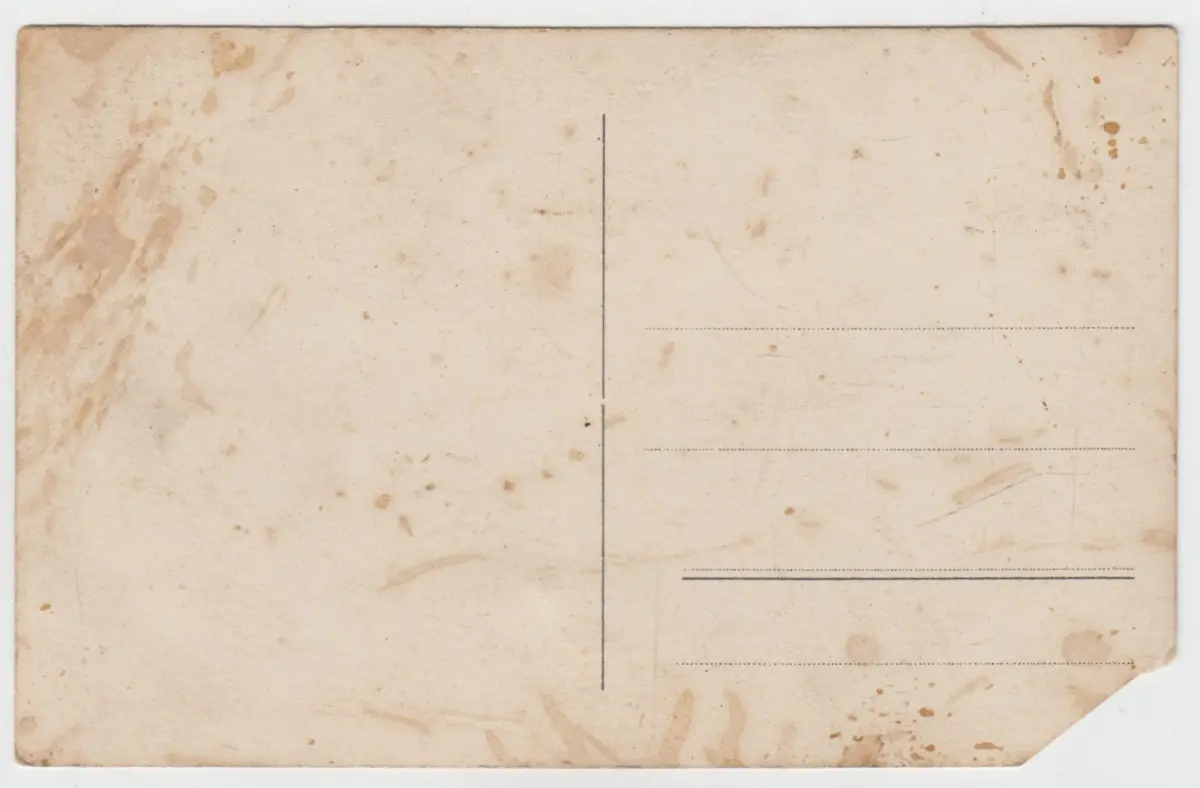 Bemerkungen: Zustand: untere linke Ecke abgeschnitten, Karte insgesamt etwas berieben, Rückseite etwas fleckig. Unbeschriebene Postkarte ohne Briefmarke und ohne Poststempel (ungelaufen). Bitte beachten Sie auch unsere Abbildungen. Fotokarte