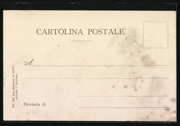 Personenbezogene Daten auf der Rückseite der Karte wurden durch blauen Textmarker unkenntlich gemacht. Die blauen Stellen sind auf die Vorderseite durchgeweicht und wirken sich negativ auf das Postkartenfoto aus